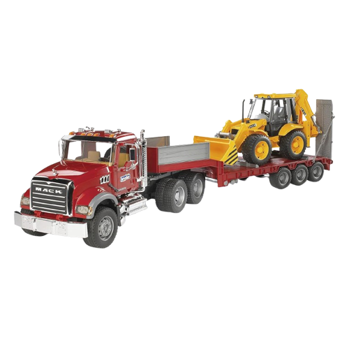 Bruder Mack Granite Flatbed Truck 02813 with JCB Loader Backhoe 1:16 Scale Construction Vehicle Toy