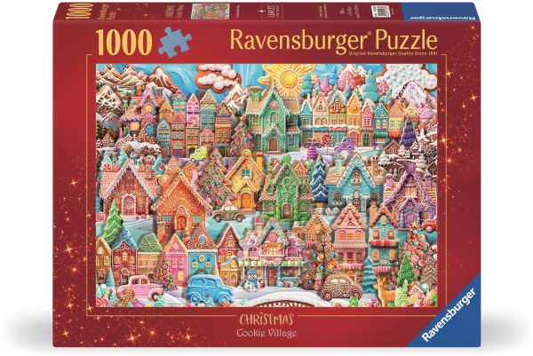 Gingerbread Houses, Cars, Trees and Clouds: Piece your way through a bright, beautiful village scene made entirely out of gingerbread. Sure to become a favorite family tradition. A festive jigsaw puzzle for Christmas home decor and family fun. Crafted with Glare-Free Premium