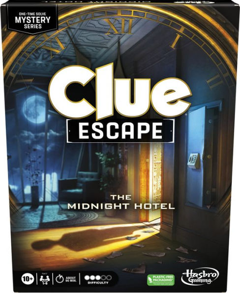 After Black's murder at Tudor Mansion, you and the rest of his guests are invited to his memorial at The Midnight Hotel. There you learn that the blackmail he'd gathered on you all still exists—and one of you has just tried to steal it! Now players must deduce WHO tried to swipe the blackmail, WHERE it's stored, and WHAT is the password to open it. The Clue Escape: The Midnight Hotel game offers classic Clue characters and mystery in an escape room game that lets you play right away with limited setup. Players move their pawns around a 3D board that's built room-by-room as they draw cards, solve puzzles, unlock rooms, and uncover clues. After escaping the hotel, they review the clues they’ve collected and use deduction to make a correct accusation and win! Gather friends and family together for a riveting, single-play experience and a game night they won't forget. It also makes a great gift for fans of the original Clue game and murder mystery games. For 1-6 players, ages 10+. ESCAPE AND SOLVE MYSTERY GAME: What happens after Boddy's murder? The story continues in Clue Escape: The Midnight Hotel game, offering the intrigue of classic Clue in an escape room board game DECODE THRILLING PUZZLES: The infamous cast returns—and one of them tries to steal Boddy's blackmail files! Players work together to figure out who it was by cracking puzzles that unlock new clues EXPLORE A DYNAMIC GAMEBOARD WITH 3D INNOVATION: Escape the hotel through a board that literally builds up as the suspense does! As players solve puzzles, the board grows to reveal rooms and new details COLLECT CLUES: Deduce the WHO, WHERE, and with WHAT to win! Track down clues and collect evidence for the final solve. The more info players find, the easier to make the correct accusation. AN EXCITING, 1-TIME SOLVE COOPERATIVE GAME: In this cinematic, single-play strategy game, players join forces and use sleuthing skills to escape the hotel, then solve the mystery. Or play solo for the ultimate escape room game for 1 player MYSTERY GAMES MAKE GREAT FAMILY GIFTS: Ideal for Family Game Night, cooperative mystery games are fun gifts for families that love playing indoor games together. For 1-6 players. Ages 10+. Difficulty rating: 3