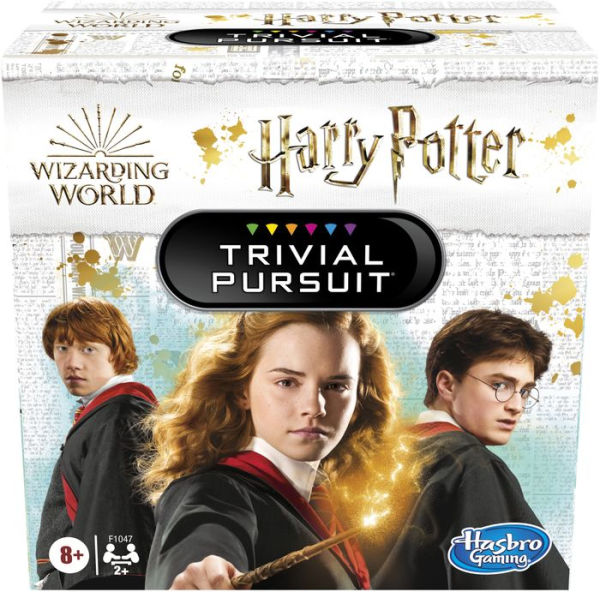 This compact and quick-playing edition of the Trivial Pursuit game includes 600 trivia questions about the magical world and beloved characters of the Harry Potter movies. Some questions might challenge even the wisest of wizards! What is the Trace? What is Krum's first name? How many brothers does Ron have? Face the challenge with these and other trivia questions in 6 categories. The Trivial Pursuit: Wizarding World Harry Potter Edition requires no gameboard, and comes in a handy, wedge-shaped container making it easy to store the game pieces, and to take on the go. Roll the die and choose a category color. Keep answering questions correctly to collect cards and win the game.