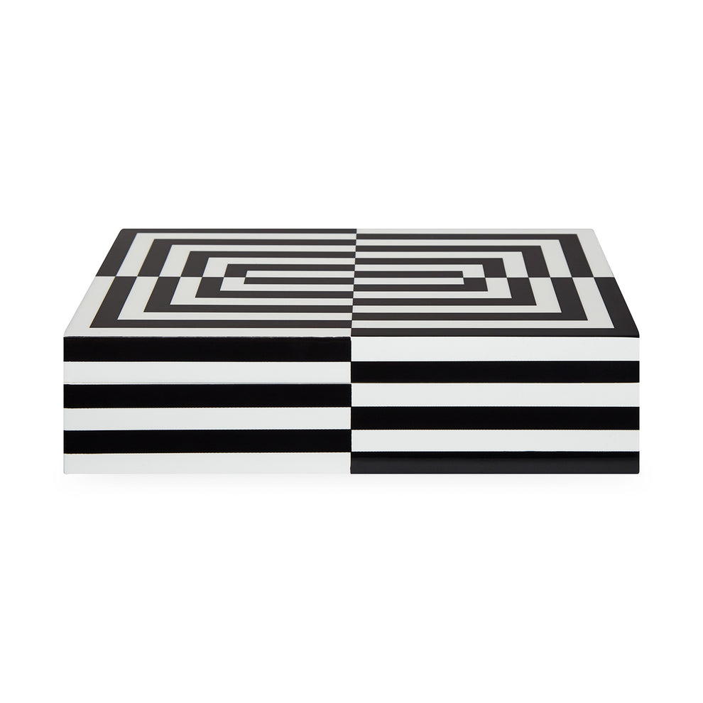 Mind-bending, hand-finished patterns in glam and glossy, high-contrast lacquer—our Op Art Lacquer Boxes POP. Keep your possessions handy but hidden while you luxe up your shelf, mantel, or tablescape. Available in three sizes for stashing, stacking, or making a stand-alone statement.
