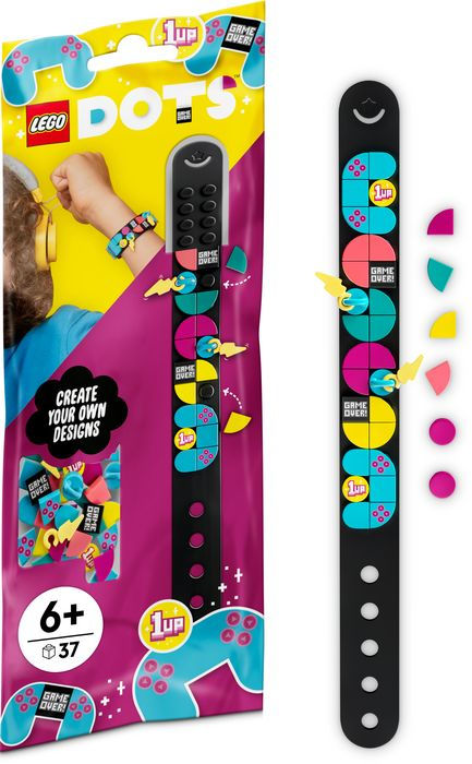 Design, share, repeat Treat a gamer or arts-and-crafts fan with this LEGO® DOTS Gamer Bracelet with Charms (41943) craft kit. Creative fun starts when they open the bag Gamer designs on a wrist Kids can boost their imagination and design skills as they play with the kit, with a bracelet in black, plus tiles and charms that highlight cool colors and gamer trends Creativity in a bag This set works on its own for quick, imaginative originality. Kids can also use the LEGO® DOTS Extra DOTS Series 6 bag (sold separately) to expand their designs Trendsetting treat for ages 6+ Any arts-and-crafts fan will love this customizable kit. The sturdy bracelet, colorful tiles and charms will make an extra treat or birthday gift for kids Pocket-sized portability With the bracelet measuring over 7.5 in. (19 cm) long, theres lots of space for kids to be creative and show off their gamer-inspired style: any time, any place Decorating starts right away Easy-to-follow inspiration on the packaging makes creating a snap, with tiles in teal, magenta and neon colors, plus lightning bolt charms to make a statement Design confidence and freedom This LEGO® DOTS kit represents open creativity. The ready-to-decorate bracelet offers bite-sized chances to build childrens ingenuity and poise through fun Unlimited play and self-expression LEGO® DOTS sets bring the joy of LEGO play to a new group of kids through creating and customizing their own jewelry or room decor items Uncompromising quality Ever since 1958, LEGO® components have met stringent industry standards to ensure they connect consistently Safety first LEGO® components are dropped, heated, crushed, twisted and analyzed to make sure they meet rigorous global safety standards