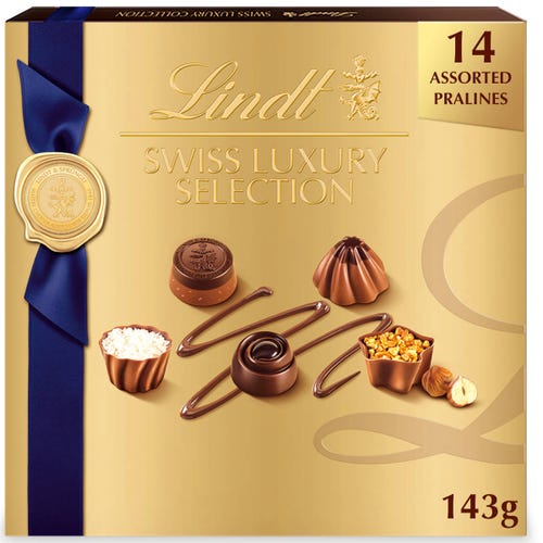 Experience the ultimate chocolate indulgence with this 14 Piece Lindt Swiss Luxury Selection Assorted Chocolates. This beautiful gift box of assorted chocolate candy is the perfect way to turn everyday events into special occasions. Whether celebrating with colleagues, relaxing with family, sharing a meal with friends or savoring time to yourself, this chocolate gift box is an elegant accompaniment to all of life’s little moments. Crafted with high quality, premium ingredients, this gourmet chocolate assortment includes a sophisticated collection of elegant European style chocolates crafted with exquisite milk chocolate, dark chocolate and white chocolate. Each box of chocolates features eight recipes, including Macchiato, Carre de Stracciatella, Caramelita and Perle de Cacao, creating an assortment that is perfect for sharing or for treating that special someone. Embodying the passion and expert craftsmanship of the Lindt Master Chocolatiers, this gift box of Lindt chocolate provides a unique and rewarding chocolate experience.