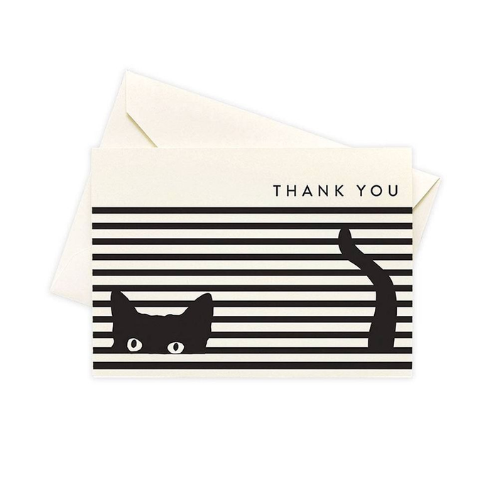The simplicity of black and white with the playfulness of a cat. We think you'll agree, this original design makes a great set of thank you notes.
