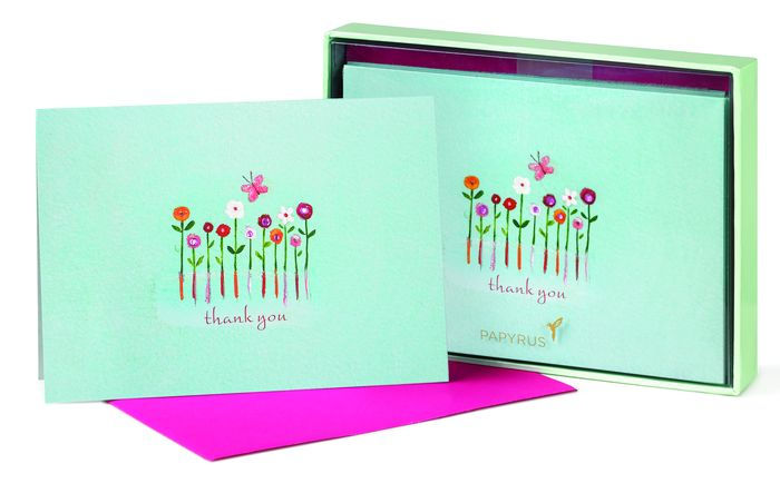 Connect with friends, family, and coworkers, using beautiful Papyrus stationery. This cute, simple design features multi-colored florals with small accents of crystalline glitter and varying sizes of pink gemstones.