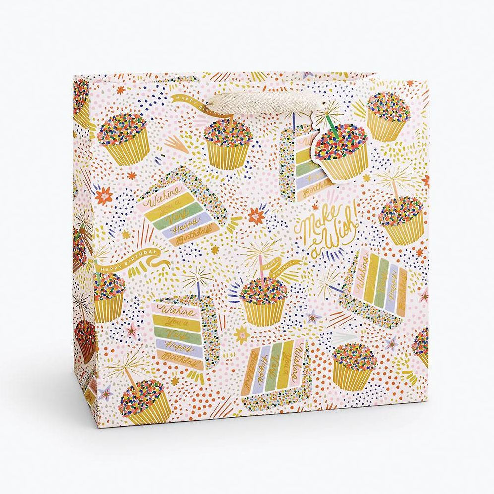 Giving gets even more special with these Rifle gift bags, which feature charming extras like cotton ribbon handles and a coordinating "To"¥ and "From"¥ tag. Say Happy Birthday with this gift bag that features a colorful birthday cake design!! A wonderful print that is perfect for all celebrations! Design by Rifle Paper Co.